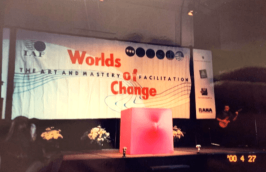 很幸運地,2000年初,我收到歡迎參會的通知! 年會主題: 變革的世界—引導的藝術與卓越(Worlds of Change-The Art and Mastery of Facilitation)。(圖: 開場舞臺)